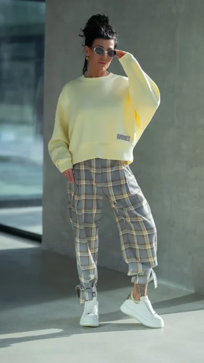BASTET Spodnie w kratkę z zakładką (szary – żółty)
