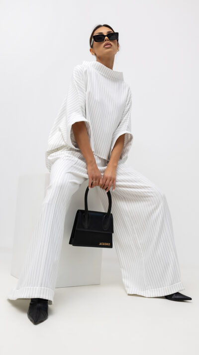 MISS CITY OFFICIAL Damskie Spodnie Striped Pattern (biały)