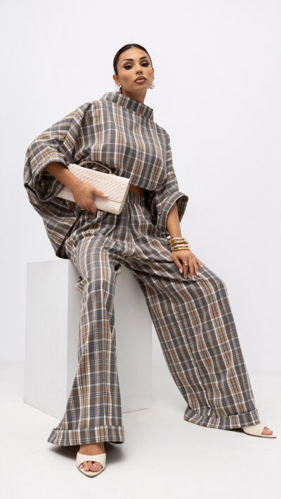 MISS CITY OFFICIAL Damskie Spodnie Grid Pattern (beż)