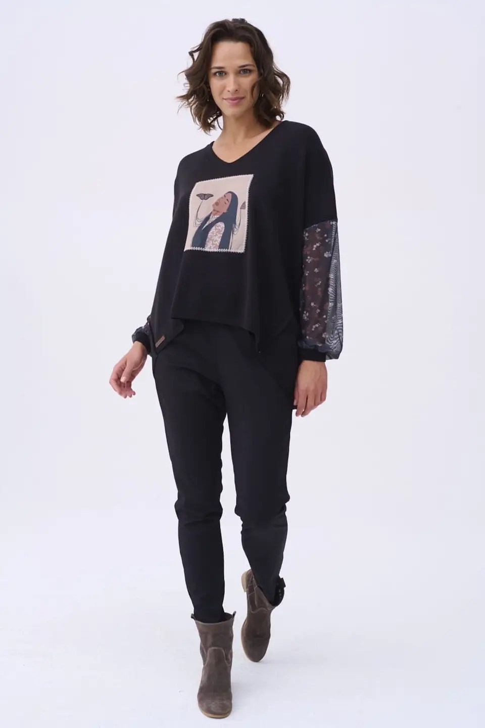 Ten niezwykle oryginalny sweter damski Pocahontas od polskiej marki Blue Shadow to propozycja dla kobiet, które lubią łączyć wygodę z nietuzinkowym stylem. Luźny fason, przyjemna w dotyku dzianina oraz efektowne rękawy z siatki sprawiają, że model ten wyróżnia się wśród codziennych swetrów, a naszyta aplikacja z motywem Pocahontas dodaje mu wyjątkowego charakteru.