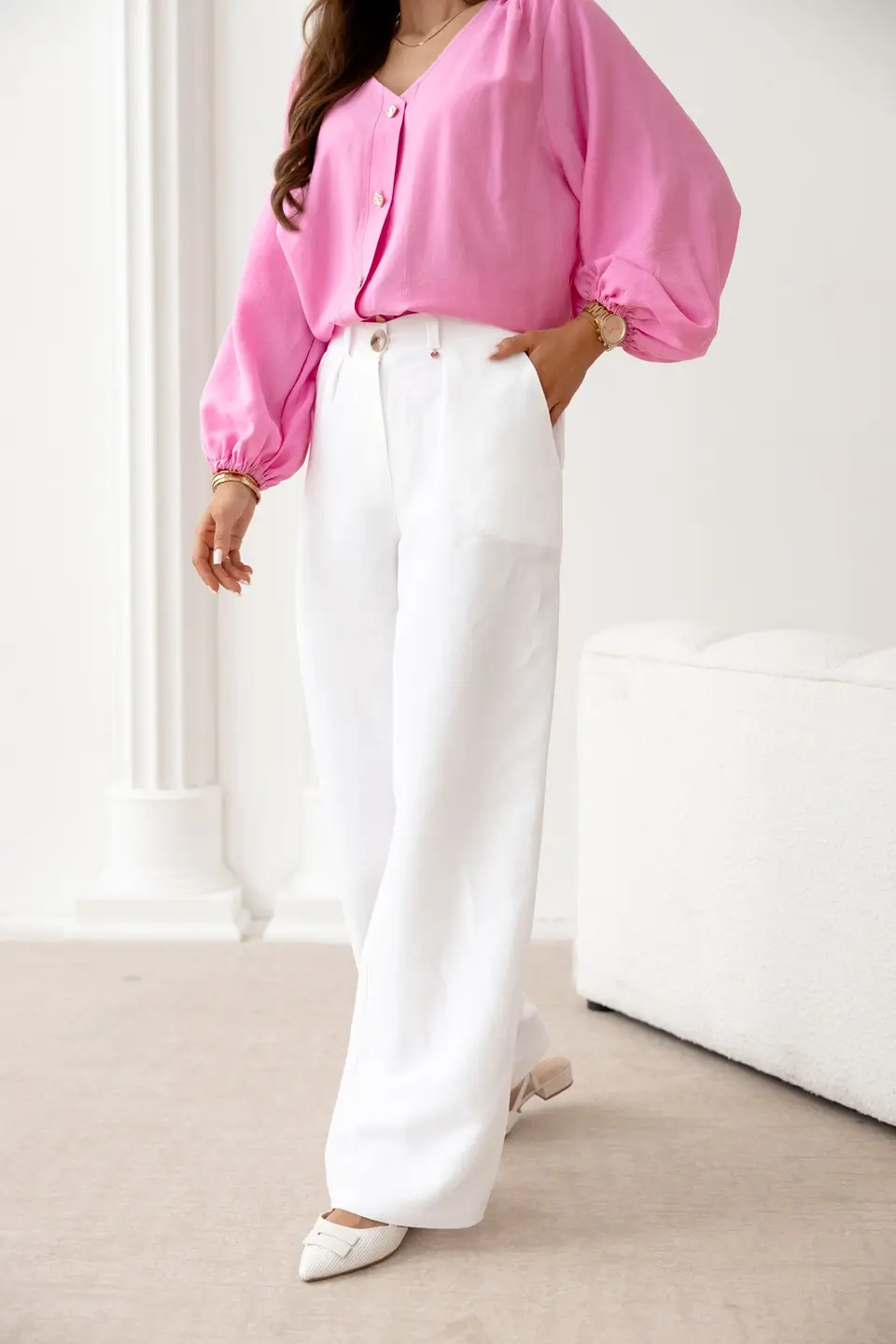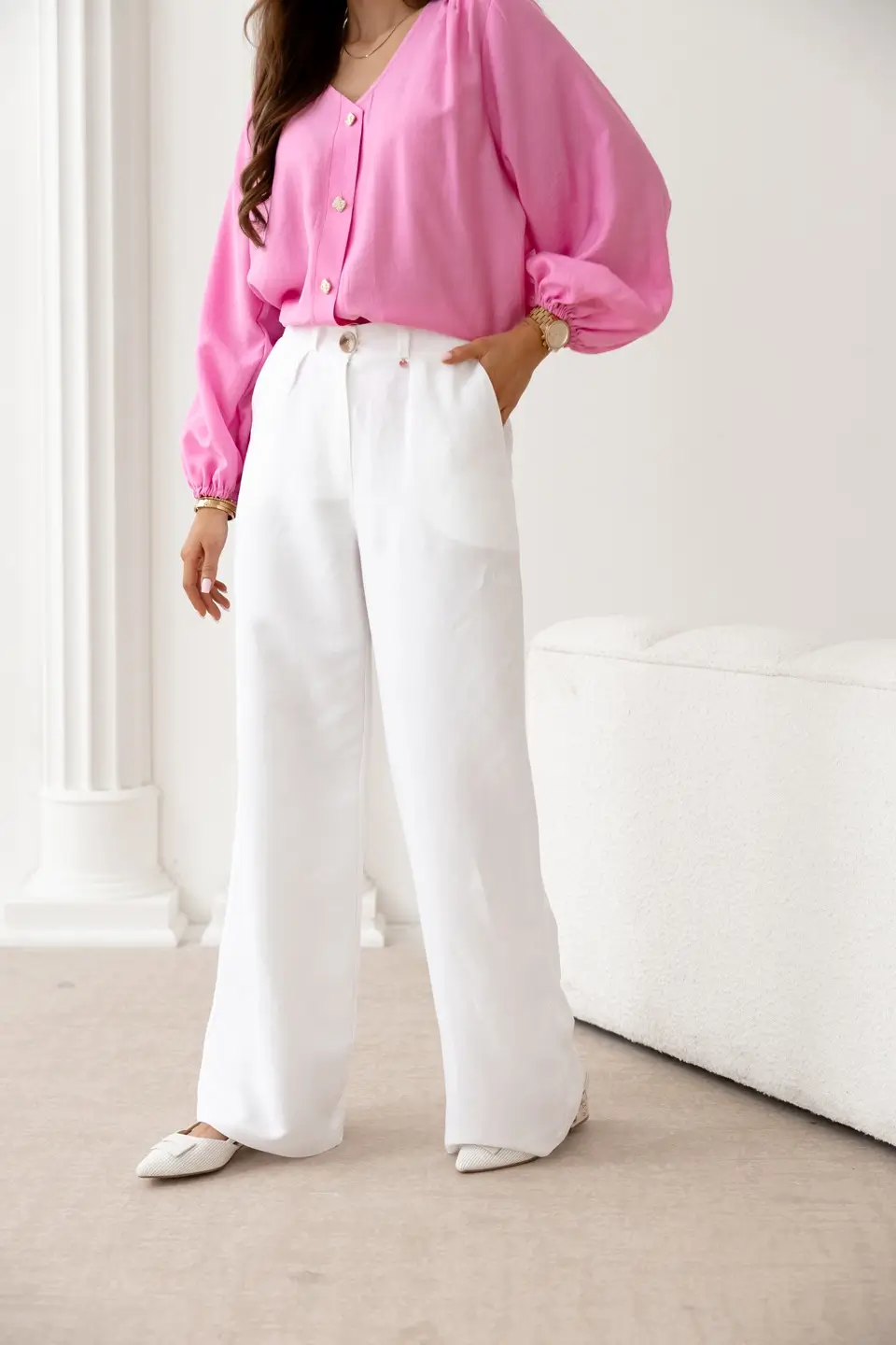 Wykonane w 100% z naturalnego lnu – przewiewne, lekkie i niezwykle komfortowe. Idealne na lato, do pracy, na wyjazd i na co dzień. Prosty krój wysmukla sylwetkę, a kant nadaje im szyku i klasy.