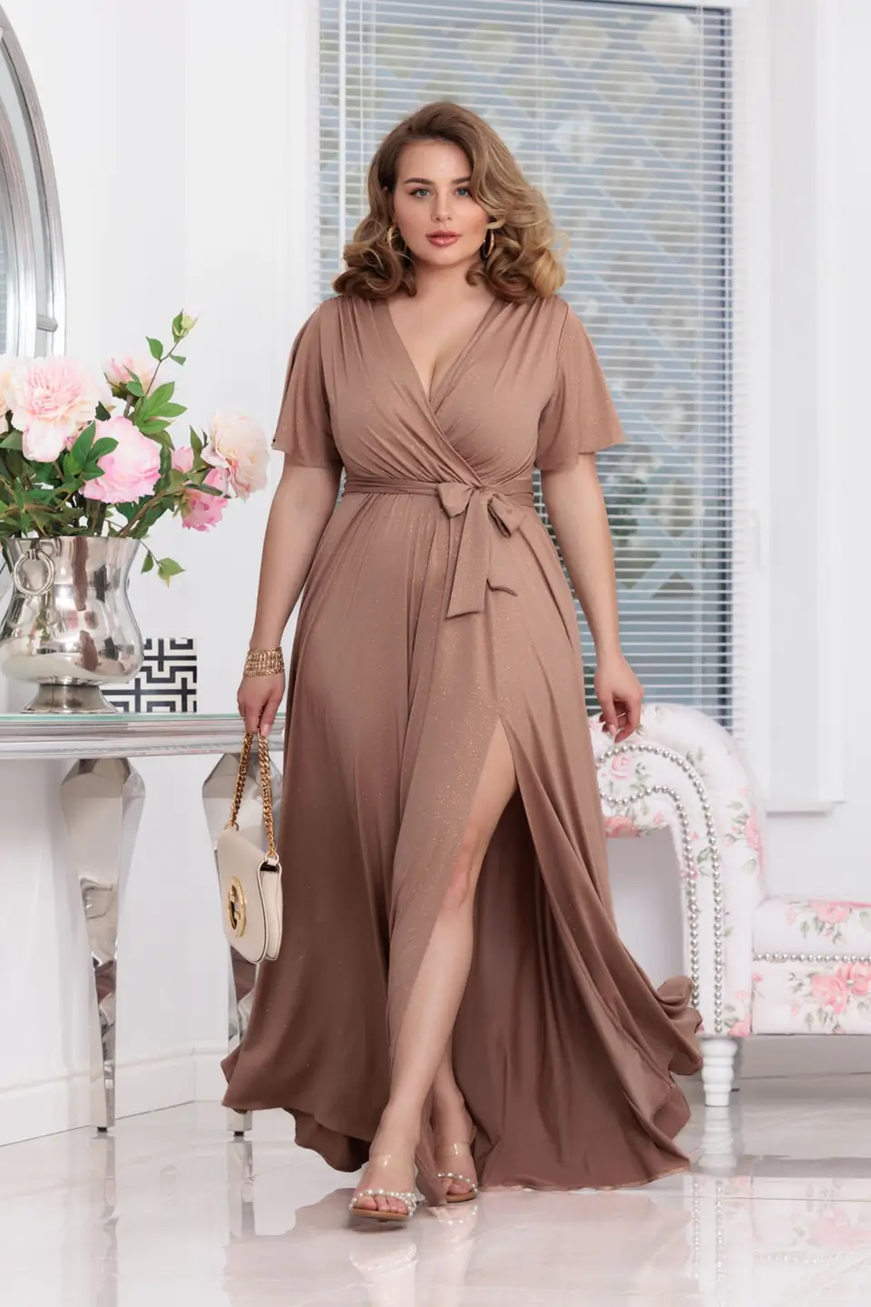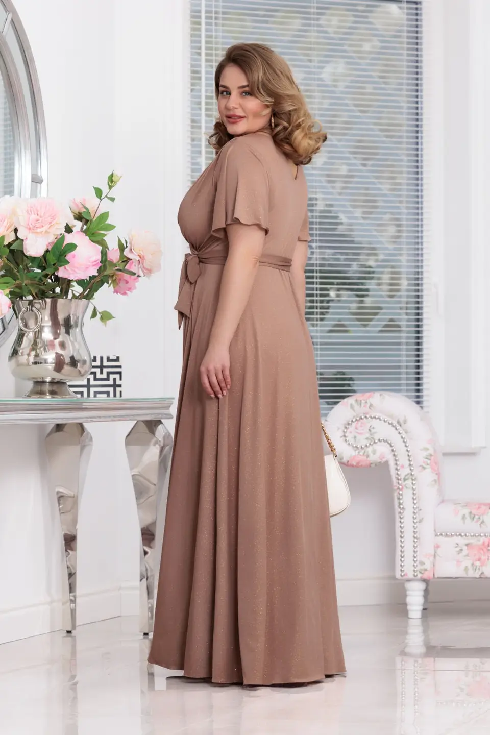 - Brokatowy materiał: Delikatny połysk dodaje kreacji wyrafinowania.
