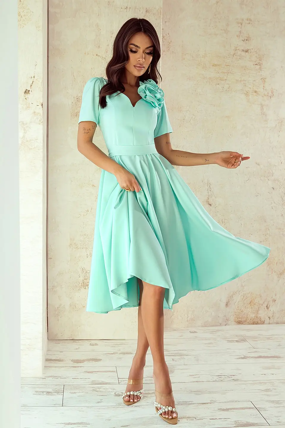 ✔ Rozkloszowany fason – pięknie układa się w ruchu, wysmuklając sylwetkę i nadając lekkości.