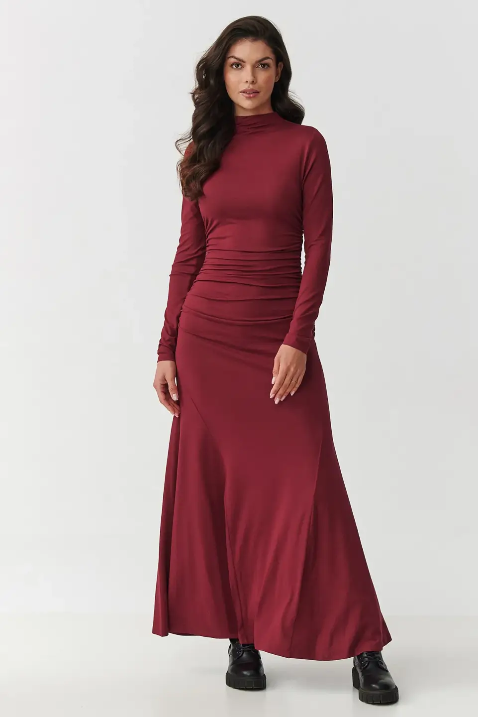 Polski producent MAKADAMIA – Sukienka maxi z golfem i marszczeniem