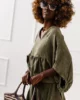 Komplet SUR to świetna propozycja dla kobiet w różnym wieku – jego luźny, ale przemyślany krój pasuje do wielu typów sylwetek. Zarówno bluzka, jak i spódnica nie krępują ruchów i pozwalają czuć się swobodnie przez cały dzień. Taki zestaw sprawdzi się na spacer, zakupy, letnie spotkanie z przyjaciółmi, ale również jako stylizacja wakacyjna czy na festiwal. Zestaw go ze skórzanymi rzymiankami, klapkami, dużym koszykiem i kapeluszem, by stworzyć modny, boho look.
