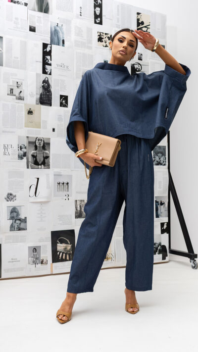 MISS CITY OFFICIAL Damska Bluzka Kimono Jeans (ciemny jeans)