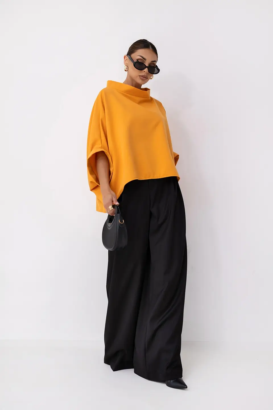 To tkanina idealna na każdą porę roku – latem daje uczucie świeżości i lekkości, zimą sprawdzi się jako element warstwowej stylizacji. Bluzka nie prześwituje i nie traci koloru, co czyni ją niezawodnym elementem garderoby na wiele sezonów.