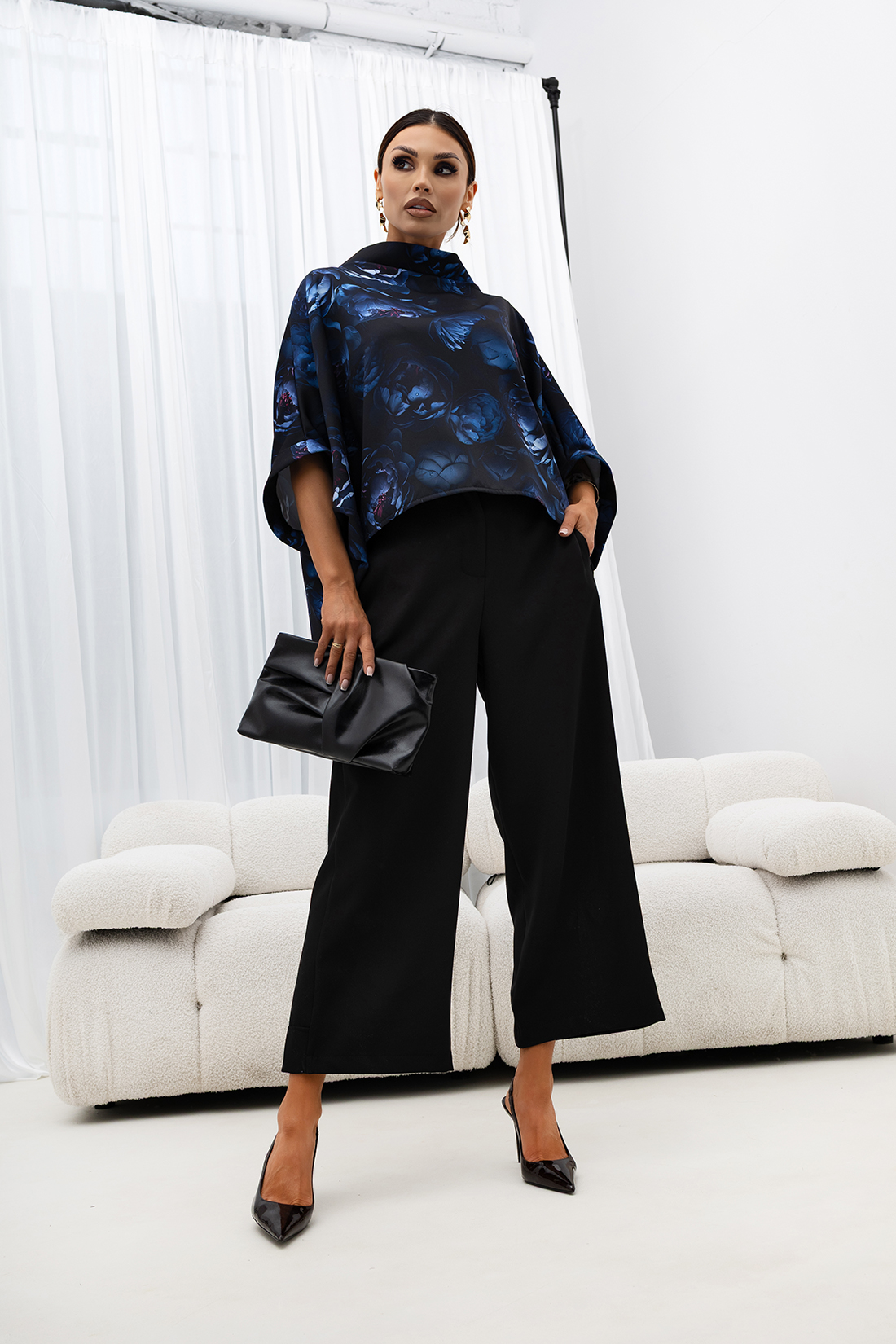 Bluzka Kimono charakteryzuje się luźnym krojem i szerokimi rękawami, co zapewnia swobodę ruchów i niezwykły komfort noszenia. Wykończenia w stylu kimono i minimalistyczny design nadają jej nowoczesnego charakteru, dzięki czemu doskonale sprawdzi się w casualowych zestawieniach oraz w bardziej eleganckich stylizacjach.