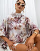 Bluzka Kimono charakteryzuje się luźnym krojem i szerokimi rękawami, co zapewnia swobodę ruchów i niezwykły komfort noszenia. Wykończenia w stylu kimono i minimalistyczny design nadają jej nowoczesnego charakteru, dzięki czemu doskonale sprawdzi się w casualowych zestawieniach oraz w bardziej eleganckich stylizacjach.