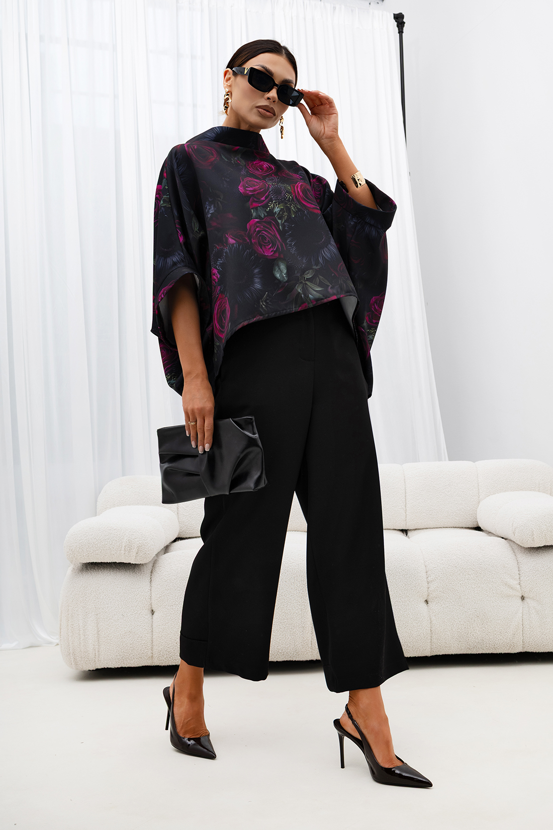 Bluzka Kimono charakteryzuje się luźnym krojem i szerokimi rękawami, co zapewnia swobodę ruchów i niezwykły komfort noszenia. Wykończenia w stylu kimono i minimalistyczny design nadają jej nowoczesnego charakteru, dzięki czemu doskonale sprawdzi się w casualowych zestawieniach oraz w bardziej eleganckich stylizacjach.