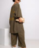 Luźny fason sprawia, że bluzka doskonale układa się na sylwetce i gwarantuje wygodę przez cały dzień. Dekolt w łódke subtelnie podkreśla szyję, dodając całości kobiecego akcentu, a minimalistyczna forma przełamana jest charakterystycznymi napisami nawiązującymi do stylu militarnego.