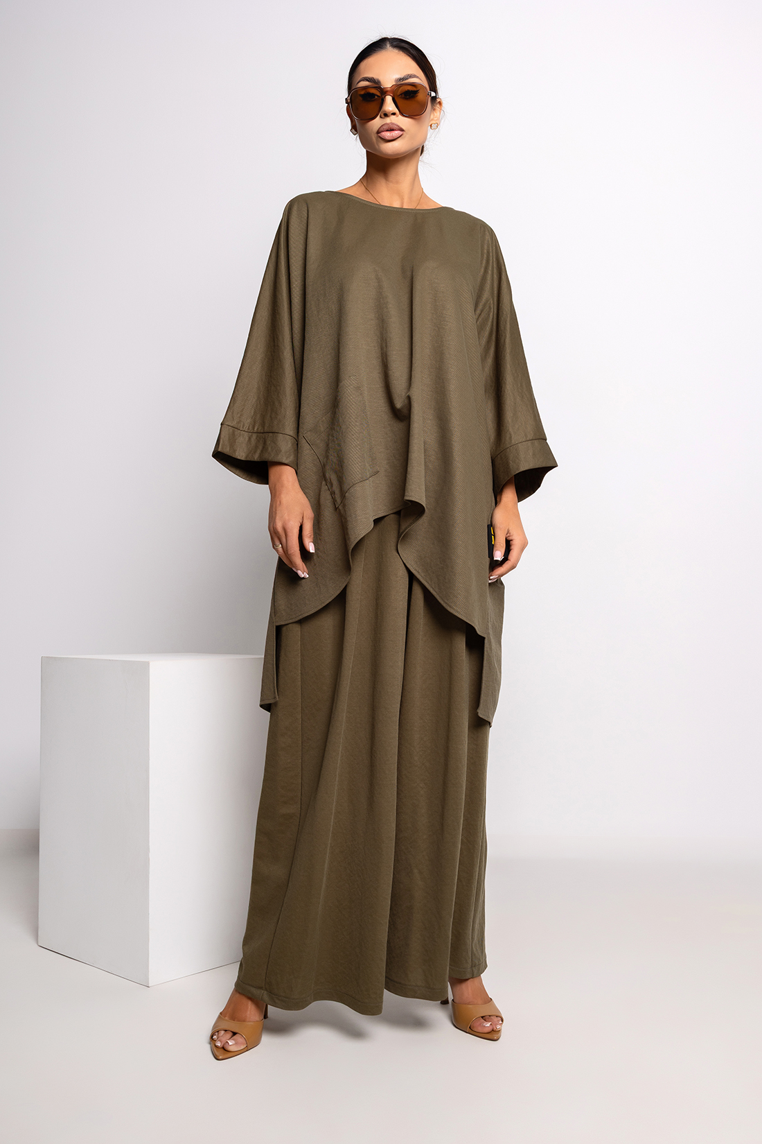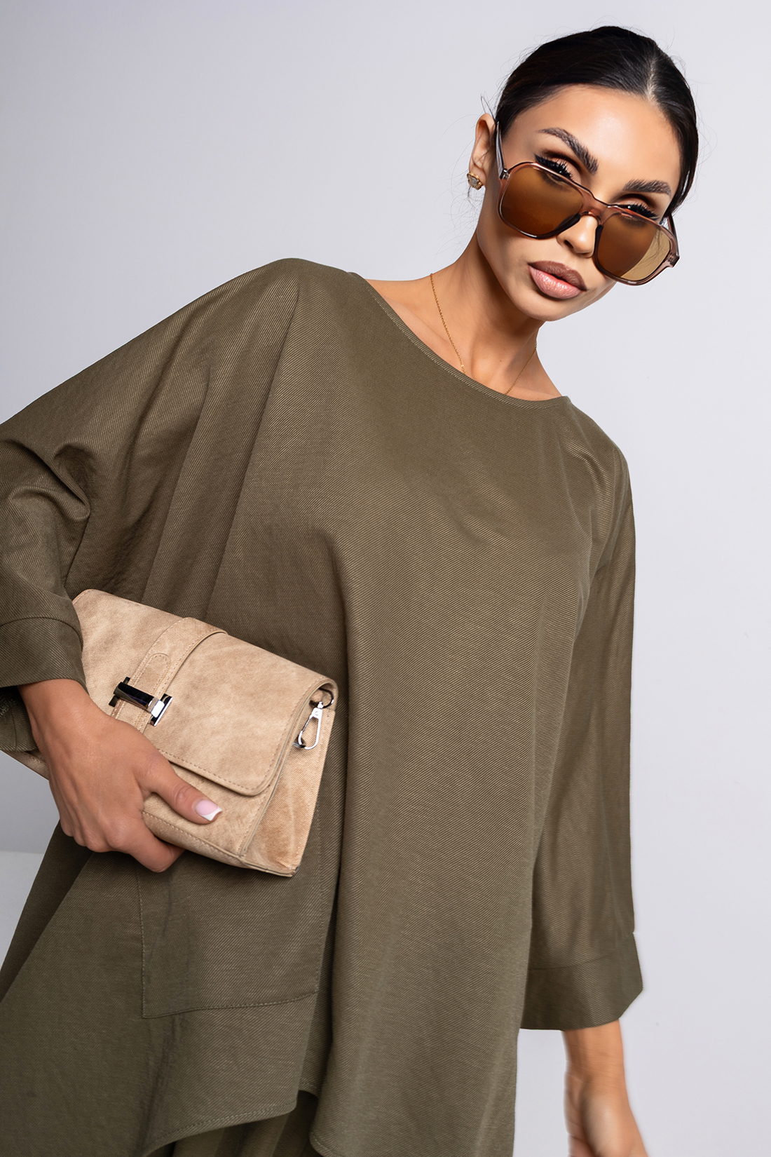 Stylowa bluzka z dekoltem w łódkę i obniżoną linią ramion, inspirowana militarną estetyką, która łączy swobodę z wyrazistym charakterem. Wykonana z lekkiego materiału przypominającego len, zapewnia komfort noszenia oraz naturalny, lekko surowy wygląd.