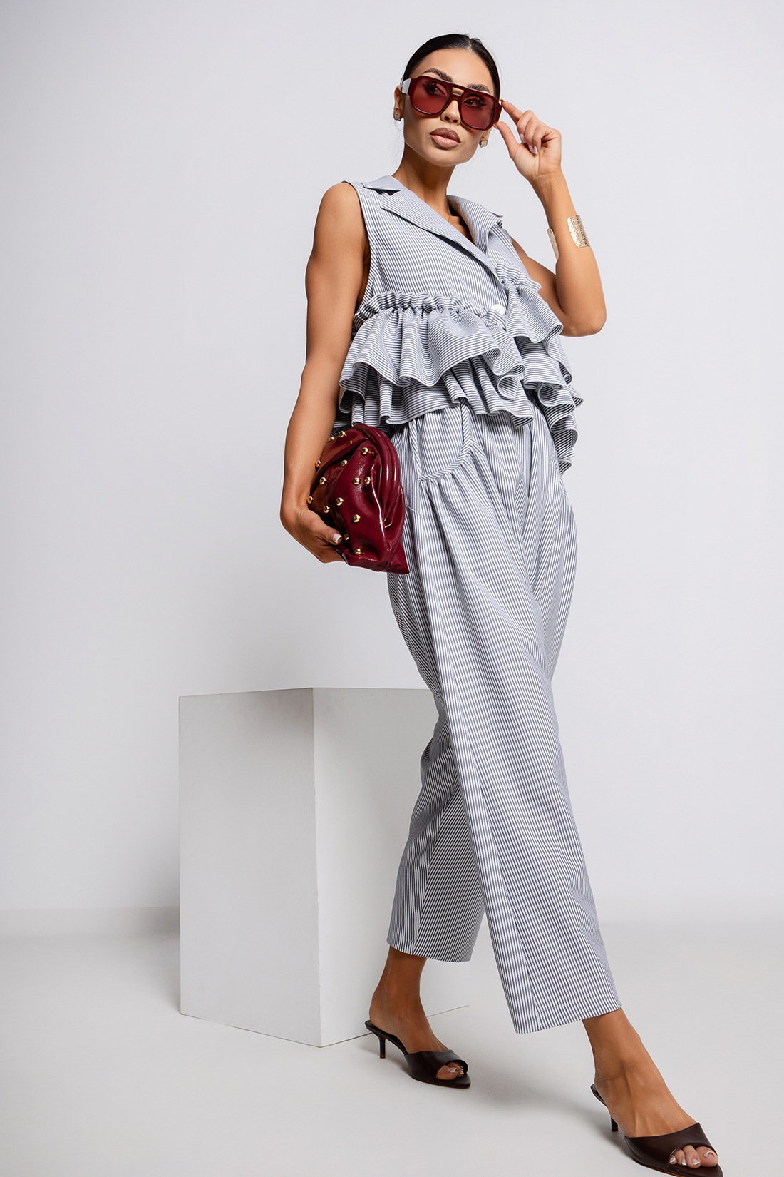 Ta wyjątkowa bluzka to idealne połączenie nowoczesnej formy z romantycznymi detalami, które przyciągają wzrok i nadają stylizacji niepowtarzalnego charakteru.