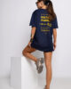 Luźny fason sprawia, że bluzka doskonale układa się na sylwetce i gwarantuje wygodę przez cały dzień. Dekolt w kształcie litery V subtelnie podkreśla szyję, dodając całości kobiecego akcentu, a minimalistyczna forma przełamana jest charakterystycznymi napisami nawiązującymi do stylu militarnego.