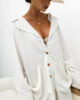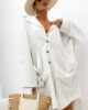 Model wyróżnia się klasycznym kołnierzykiem oraz zapięciem na guziki w dopasowanym odcieniu, co podkreśla jego spójną i dopracowaną formę. Obniżona linia ramion oraz szerokie, wydłużone rękawy nadają koszuli modnego, nonszalanckiego wyglądu, jednocześnie zapewniając pełną swobodę ruchów. Duże, naszywane kieszenie z przodu stanowią praktyczny element, który przełamuje klasyczny fason i dodaje całości wyrazistości.