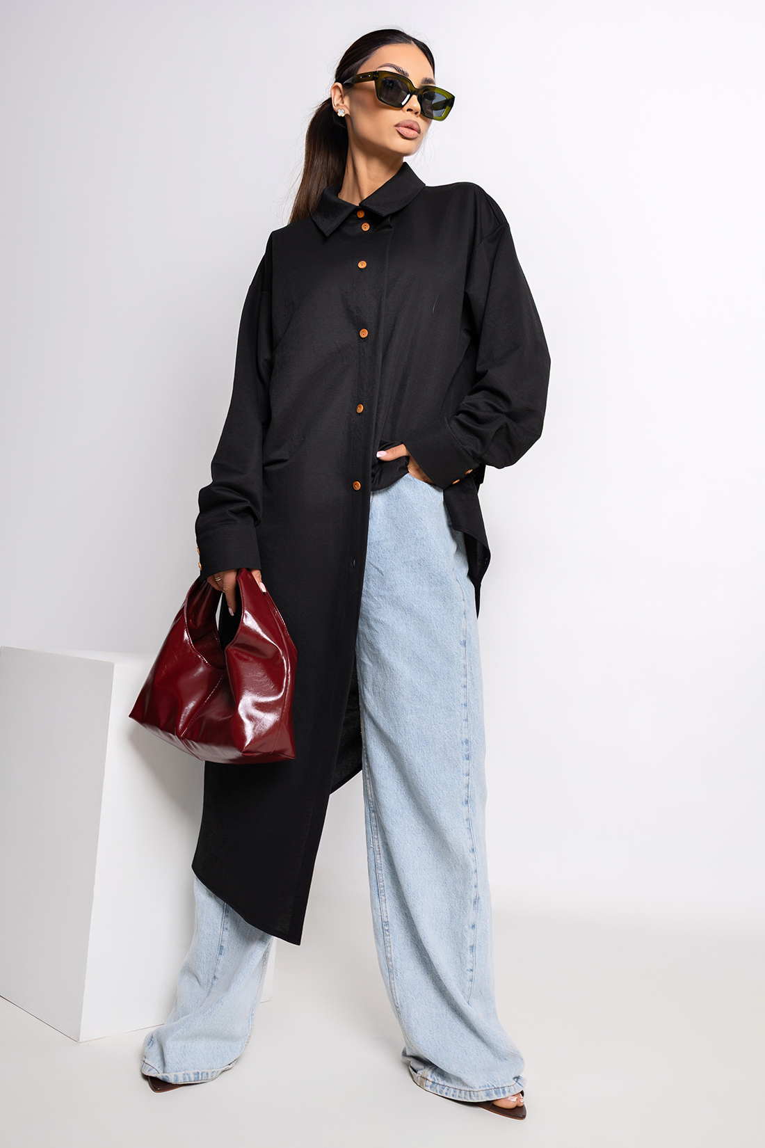 Modna koszula o wydłużonym kroju, zaprojektowana z myślą o kobietach, które lubią łączyć wygodę z wyrazistym, nowoczesnym stylem. To model, który doskonale wpisuje się w aktualne trendy streetwearowe, a jednocześnie pozostaje niezwykle uniwersalny i łatwy do stylizowania.