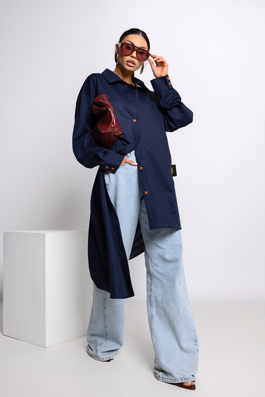 Modna koszula o wydłużonym kroju, zaprojektowana z myślą o kobietach, które lubią łączyć wygodę z wyrazistym, nowoczesnym stylem. To model, który doskonale wpisuje się w aktualne trendy streetwearowe, a jednocześnie pozostaje niezwykle uniwersalny i łatwy do stylizowania.
