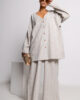 Całość utrzymana jest w subtelnym, pionowym prążku, który nie tylko dodaje jej elegancji, ale również optycznie wysmukla sylwetkę i wydłuża proporcje ciała. Stonowana kolorystyka sprawia, że koszula jest niezwykle łatwa do stylizowania – pasuje zarówno do klasycznych, jak i bardziej nowoczesnych zestawów.