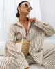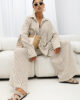 Luźny fason sprawia, że model nie krępuje ruchów i świetnie dopasowuje się do różnych typów sylwetek. Koszula doskonale prezentuje się zarówno noszona solo, jak i jako element kompletu – szczególnie w zestawieniu z szerokimi spodniami w tym samym wzorze, tworząc spójny, modny look.