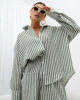Luźny fason sprawia, że model nie krępuje ruchów i świetnie dopasowuje się do różnych typów sylwetek. Koszula doskonale prezentuje się zarówno noszona solo, jak i jako element kompletu – szczególnie w zestawieniu z szerokimi spodniami w tym samym wzorze, tworząc spójny, modny look.