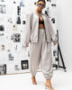 Minimalistyczna forma sprawia, że kurtka doskonale wpisuje się w aktualne trendy athleisure oraz smart casual. Świetnie komponuje się zarówno ze spodniami z kompletu, jak i z jeansami, legginsami, topem czy dopasowaną sukienką. To uniwersalny model, który sprawdzi się w stylizacjach miejskich, podróżnych oraz weekendowych.