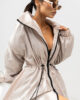 Kurtka posiada wygodny zamek błyskawiczny na całej długości, który ułatwia szybkie zakładanie i zdejmowanie. Charakterystycznym elementem modelu jest regulacja w talii w postaci ściągacza ze sznurkiem. Pozwala ona dopasować kurtkę do sylwetki, podkreślając kobiece kształty i jednocześnie zapewniając komfort noszenia. Dzięki temu kurtka może mieć zarówno bardziej luźny, sportowy charakter, jak i dopasowany, elegancki wygląd.