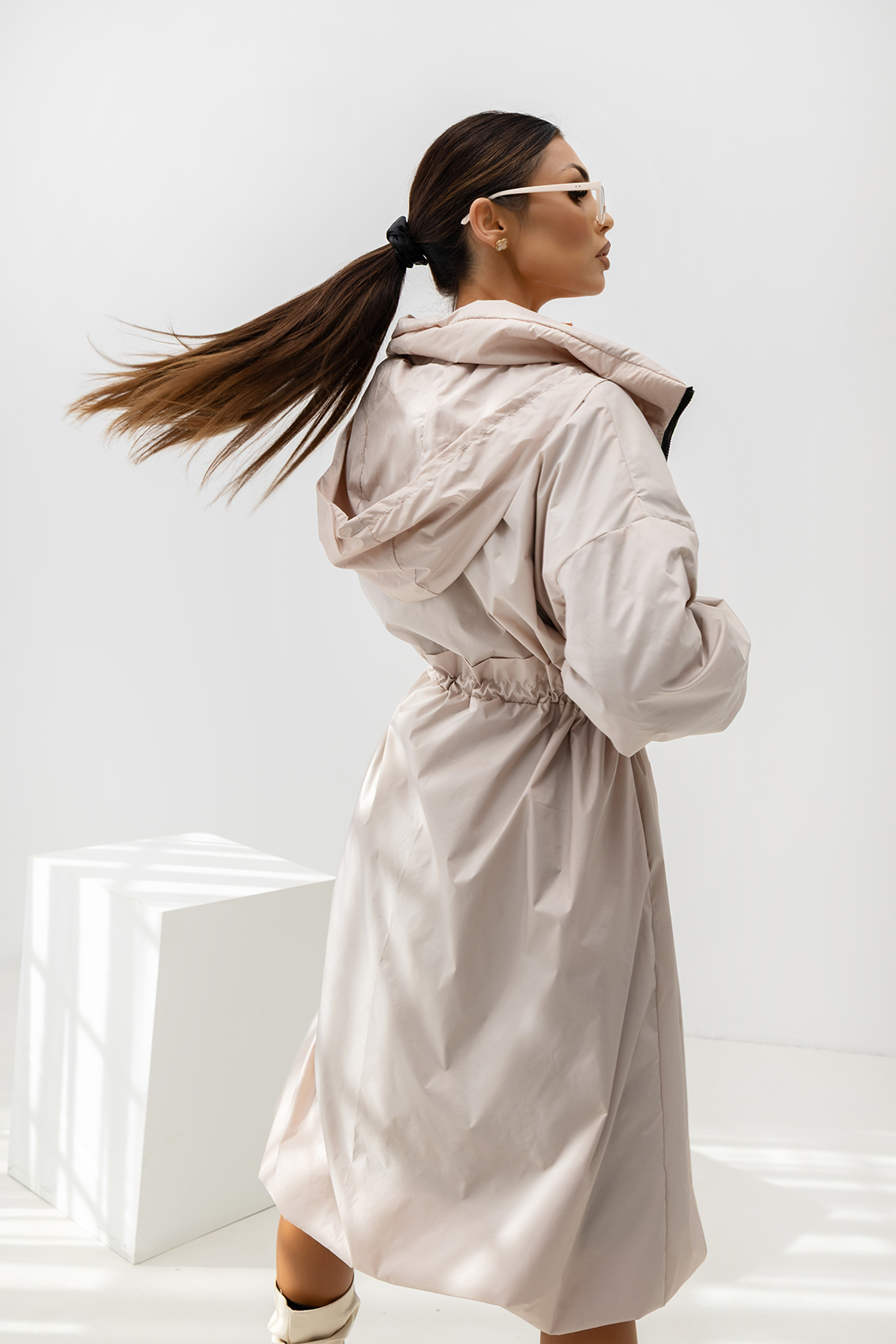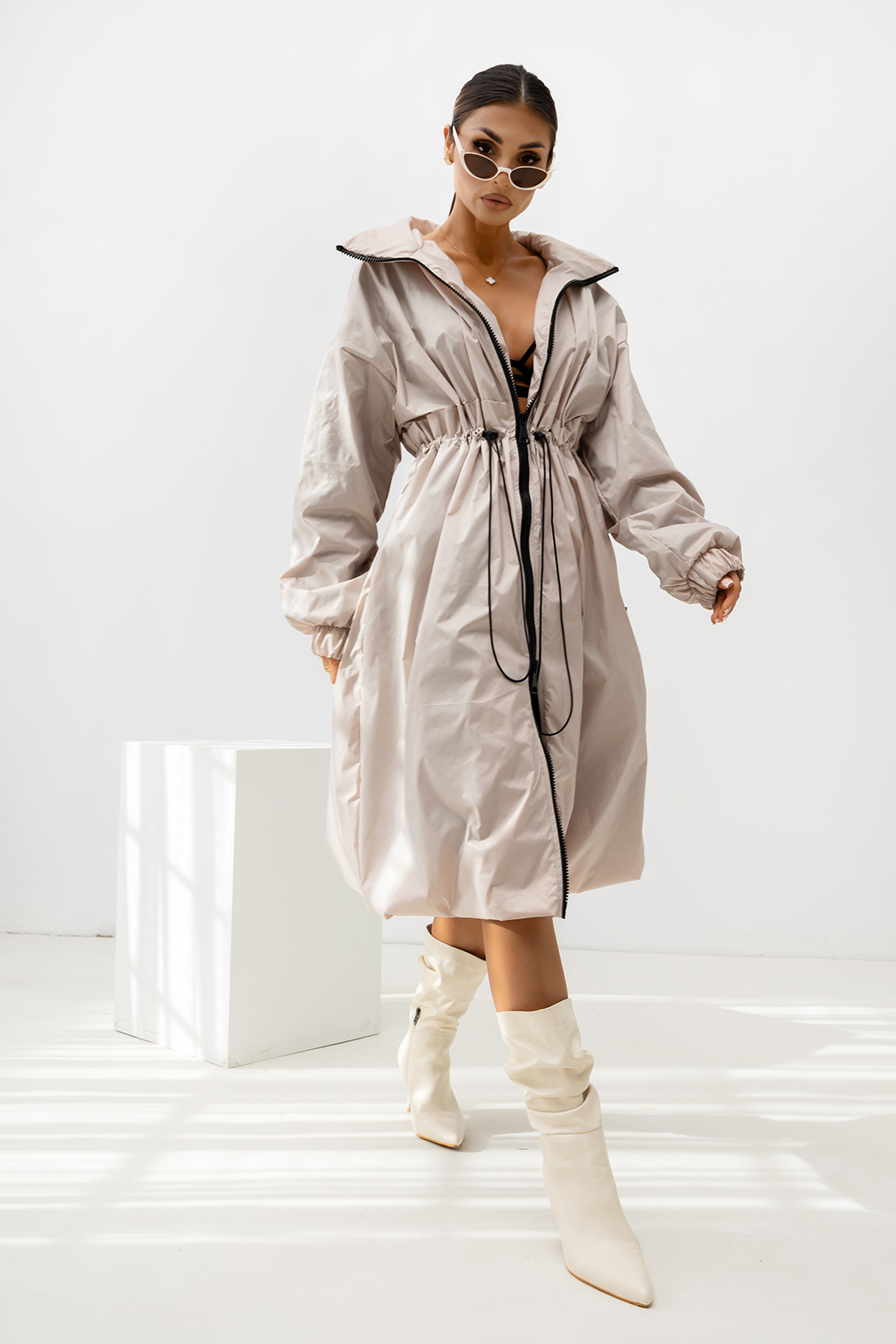 Wysoki kołnierz stanowi dodatkową ochronę przed wiatrem, a luźniejsze rękawy zakończone elastycznymi mankietami zapewniają wygodę oraz swobodę ruchów. Dłuższy fason kurtki sięgający przed kolano nadaje jej modnego charakteru, a jednocześnie chroni przed chłodem.