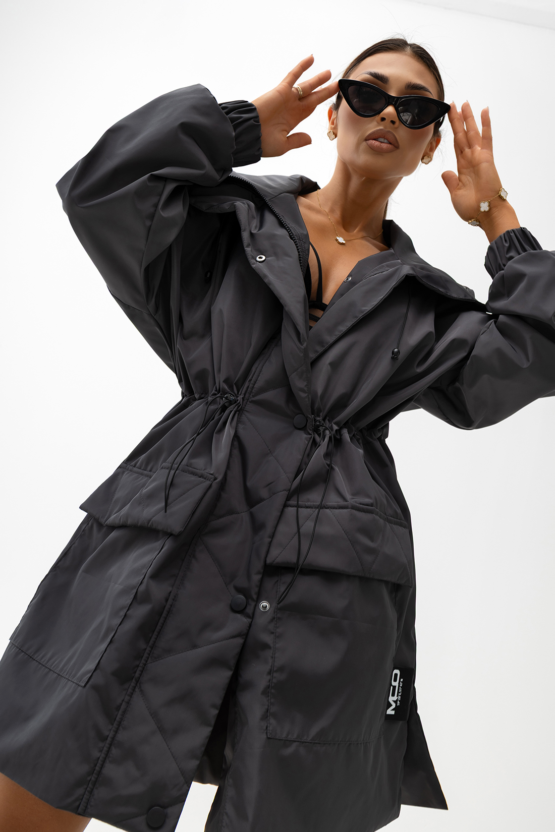 Stylowa kurtka o nowoczesnym, miejskim charakterze, łącząca funkcjonalność z modnym designem. Model o luźniejszym kroju zapewnia komfort noszenia i swobodę ruchów, a długość do połowy uda sprawia, że świetnie sprawdzi się w chłodniejsze dni.