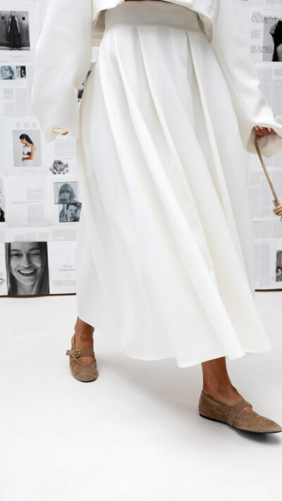 Spódnica Soft Aura to synonim harmonii i swobody ruchu, które połączono z ponadczasową elegancją. Stworzona w Polsce przez Miss City Official, łączy lekkość tkaniny z wyrafinowanym, rozkloszowanym fasonem.