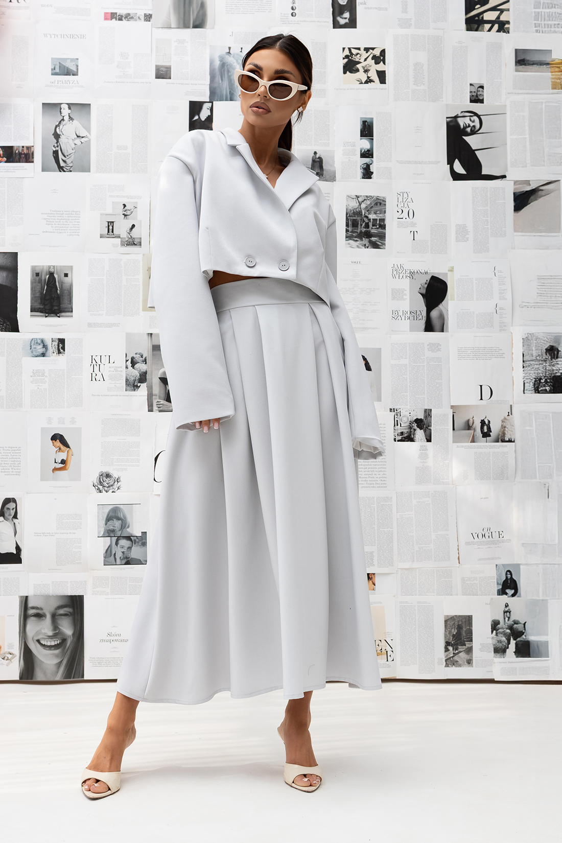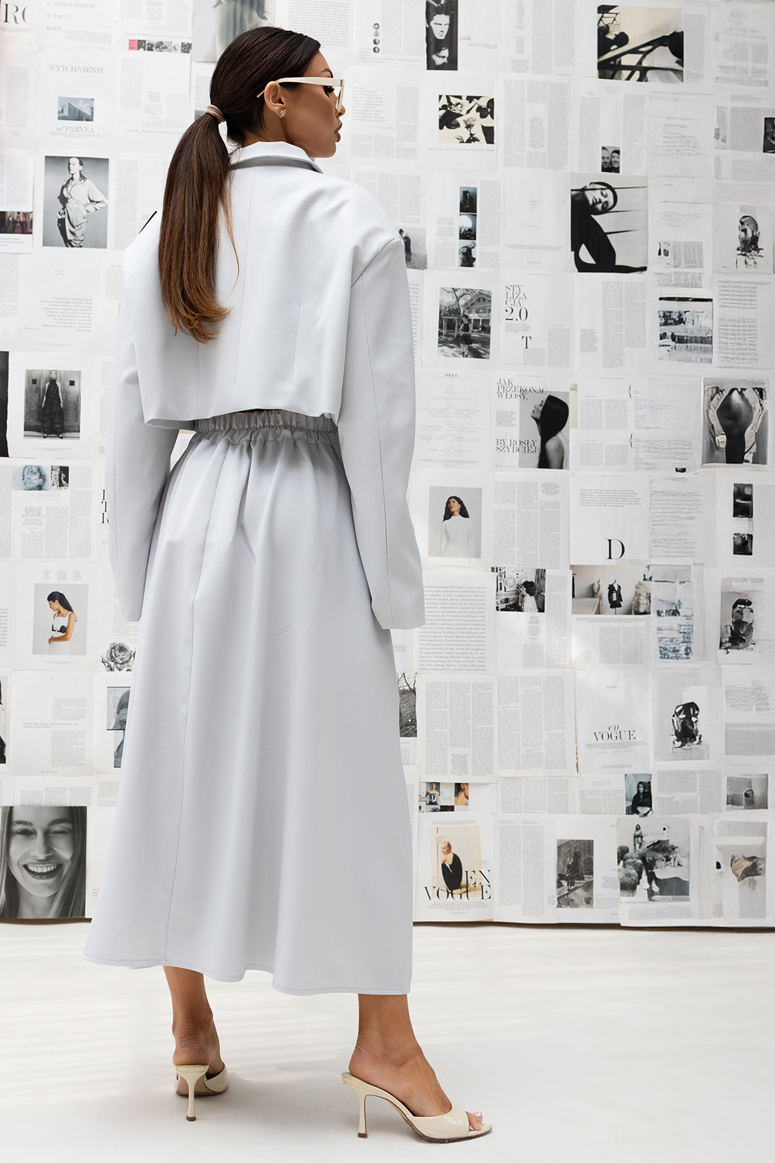 W zestawie z żakietem Soft Aura tworzy komplet, który wyróżnia się subtelnością i dbałością o każdy detal, odpowiadając na potrzeby kobiet szukających klasy i nowoczesności.