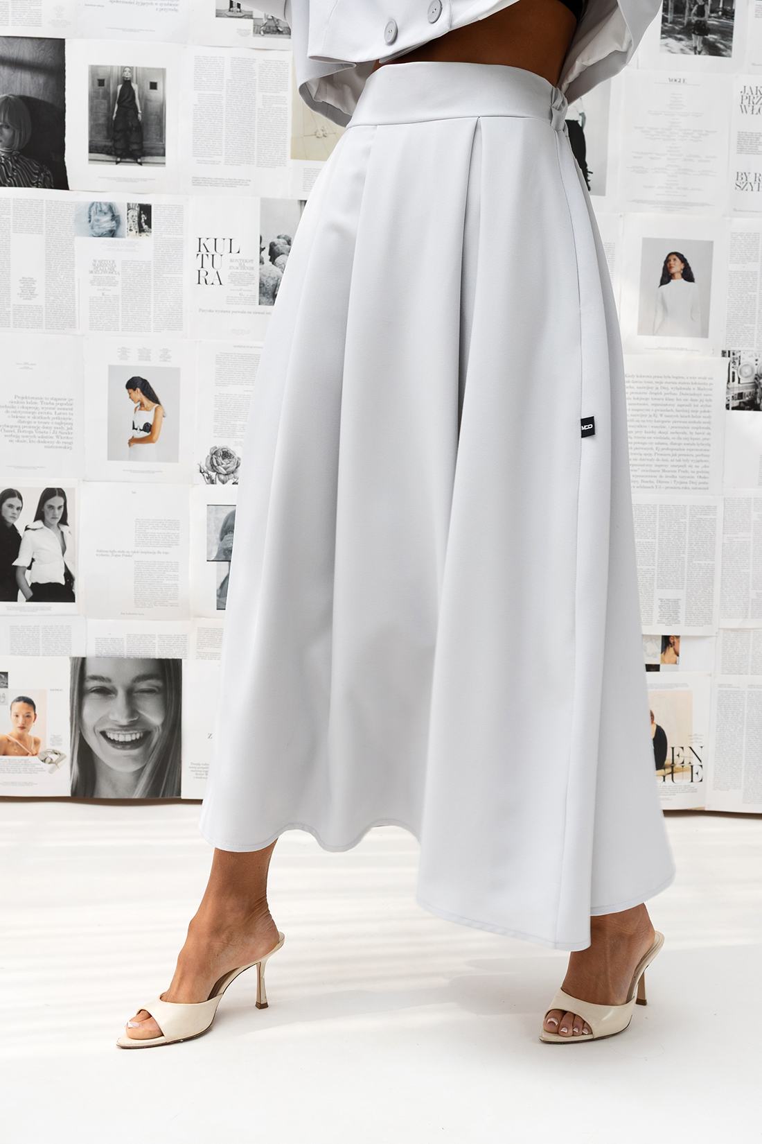 Spódnica Soft Aura to synonim harmonii i swobody ruchu, które połączono z ponadczasową elegancją. Stworzona w Polsce przez Miss City Official, łączy lekkość tkaniny z wyrafinowanym, rozkloszowanym fasonem.