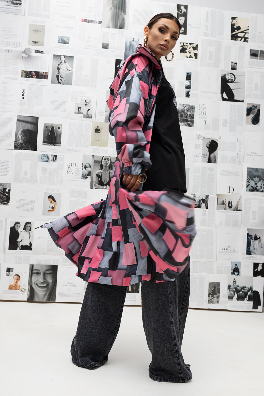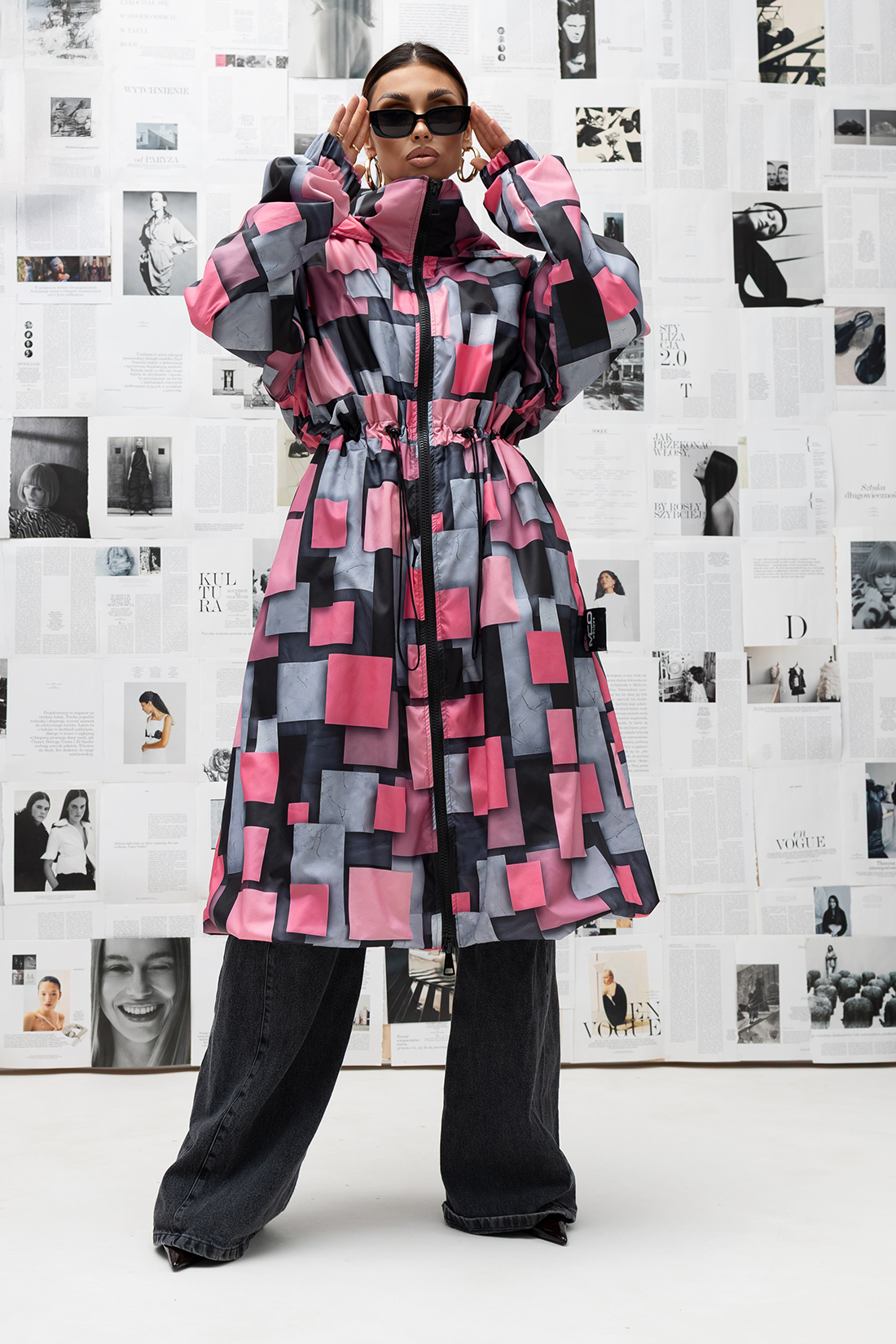 – polska produkcja premium– unikatowy geometryczny wzór– oversize’owy fason z regulacją talii– wysoki kołnierz dla ochrony i stylu