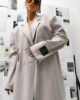 Płaszcz został wykonany z wysokiej jakości materiału i zaprojektowany z dbałością o detale. Szerokie ramiona oraz podwójne zapięcie na guziki nadają mu wyrazistej, strukturalnej formy, a duże kieszenie łączą funkcjonalność z modnym designem. Oryginalnym akcentem jest naszywka na rękawie i wszywka na ramieniu, które podkreślją charakter modelu.