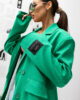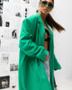 Płaszcz posiada luźny, oversize’owy krój, co zapewnia swobodę ruchów. Szerokie ramiona oraz podwójne zapięcie na guziki nadają mu wyrazistej, strukturalnej formy. Dodatkowymi atutami są duże kieszenie, które łączą funkcjonalność z modnym stylem, oraz naszywka na rękawie, która dodaje oryginalności i charakteru.