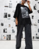 Fason oversize zapewnia wygodę i swobodę ruchów, jednocześnie wpisując się w aktualne trendy. T-shirt świetnie układa się na sylwetce, tworząc modny, nonszalancki look. Czarny kolor sprawia, że model jest uniwersalny i łatwy do stylizowania – idealny zarówno do casualowych, jak i bardziej wyrazistych miejskich outfitów.