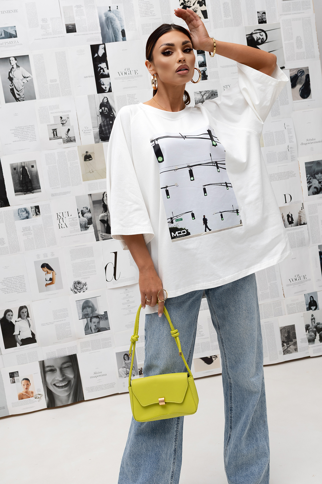 Luźny fason oversize zapewnia maksymalny komfort noszenia i modny, swobodny look, który świetnie wpisuje się w codzienne i streetwearowe stylizacje. T-shirt łatwo zestawić z jeansami, spodniami dresowymi czy szortami, tworząc modne i oryginalne outfity.