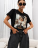 Model o nowoczesnym kroju, z okrągłym dekoltem i krótkimi rękawami, świetnie sprawdza się zarówno w casualowych, jak i eleganckich stylizacjach. Na przodzie znajduje się wyrazista grafika, która nadaje całości artystycznego i stylowego charakteru. Minimalistyczny, lecz wyrazisty design sprawia, że T-shirt  jest idealny do tworzenia zestawów na co dzień, spotkania z przyjaciółmi czy nawet bardziej formalne wyjścia.