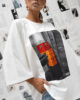 Luźny fason oversize zapewnia wygodę i swobodę ruchów, jednocześnie nadając sylwetce modny, nonszalancki wygląd. Klasyczna biel podkreśla intensywność grafiki i sprawia, że koszulka jest uniwersalna oraz łatwa do stylizowania – doskonale komponuje się z jeansami, szortami czy spodniami dresowymi.