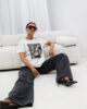 Model o nowoczesnym kroju, z okrągłym dekoltem i krótkimi rękawami, świetnie sprawdza się zarówno w casualowych, jak i eleganckich stylizacjach. Na przodzie znajduje się wyrazista grafika, która nadaje całości artystycznego i stylowego charakteru. Minimalistyczny, lecz wyrazisty design sprawia, że T-shirt  jest idealny do tworzenia zestawów na co dzień, spotkania z przyjaciółmi czy nawet bardziej formalne wyjścia.