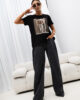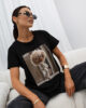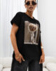 Model o nowoczesnym kroju, z okrągłym dekoltem i krótkimi rękawami, świetnie sprawdza się zarówno w casualowych, jak i eleganckich stylizacjach. Na przodzie znajduje się wyrazista grafika, która nadaje całości artystycznego i stylowego charakteru. Minimalistyczny, lecz wyrazisty design sprawia, że T-shirt jest idealny do tworzenia zestawów na co dzień, spotkania z przyjaciółmi czy nawet bardziej formalne wyjścia.