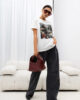 Model o nowoczesnym kroju, z okrągłym dekoltem i krótkimi rękawami, świetnie sprawdza się zarówno w casualowych, jak i eleganckich stylizacjach. Na przodzie znajduje się wyrazista grafika, która nadaje całości artystycznego i stylowego charakteru. Minimalistyczny, lecz wyrazisty design sprawia, że T-shirt  jest idealny do tworzenia zestawów na co dzień, spotkania z przyjaciółmi czy nawet bardziej formalne wyjścia.