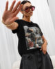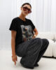 Model o nowoczesnym kroju, z okrągłym dekoltem i krótkimi rękawami, świetnie sprawdza się zarówno w casualowych, jak i eleganckich stylizacjach. Na przodzie znajduje się wyrazista grafika, która nadaje całości artystycznego i stylowego charakteru. Minimalistyczny, lecz wyrazisty design sprawia, że T-shirt  jest idealny do tworzenia zestawów na co dzień, spotkania z przyjaciółmi czy nawet bardziej formalne wyjścia.