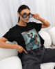 Model o nowoczesnym kroju, z okrągłym dekoltem i krótkimi rękawami, świetnie sprawdza się zarówno w casualowych, jak i eleganckich stylizacjach. Na przodzie znajduje się wyrazista grafika, która nadaje całości artystycznego i stylowego charakteru. Minimalistyczny, lecz wyrazisty design sprawia, że T-shirt jest idealny do tworzenia zestawów na co dzień, spotkania z przyjaciółmi czy nawet bardziej formalne wyjścia.