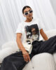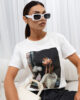 Model o nowoczesnym kroju, z okrągłym dekoltem i krótkimi rękawami, świetnie sprawdza się zarówno w casualowych, jak i eleganckich stylizacjach. Na przodzie znajduje się wyrazista grafika, która nadaje całości artystycznego i stylowego charakteru. Minimalistyczny, lecz wyrazisty design sprawia, że T-shirt jest idealny do tworzenia zestawów na co dzień, spotkania z przyjaciółmi czy nawet bardziej formalne wyjścia.