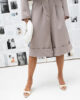 Wysoki stan oraz starannie zaprojektowana linia sprawiają, że bermudy pięknie podkreślają talię i optycznie wydłużają nogi. To eleganckie bermudy damskie, które doskonale sprawdzą się jako element stylizacji biznesowych oraz codziennych.