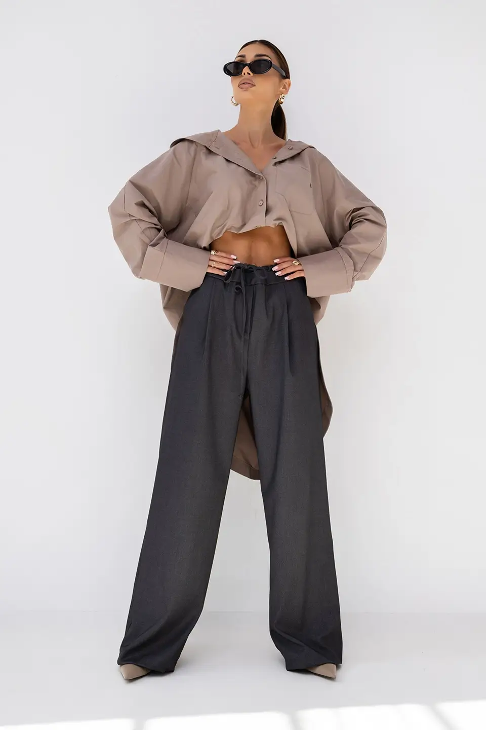 Dzięki minimalistycznej linii i eleganckiemu kantowi, spodnie sprawdzają się w wielu stylizacjach: