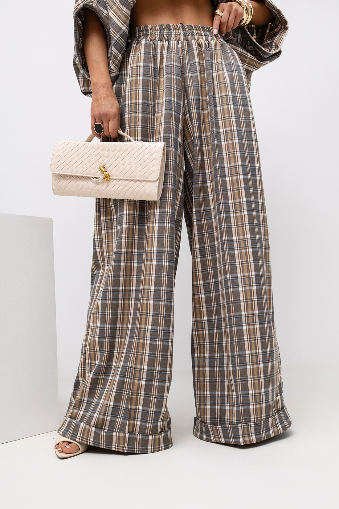 Spodnie Grid Pattern to idealna baza do wielu stylizacji – wygodne, modne i dopracowane w detalach. Doskonały wybór dla kobiet, które chcą wyglądać stylowo bez rezygnowania z komfortu.