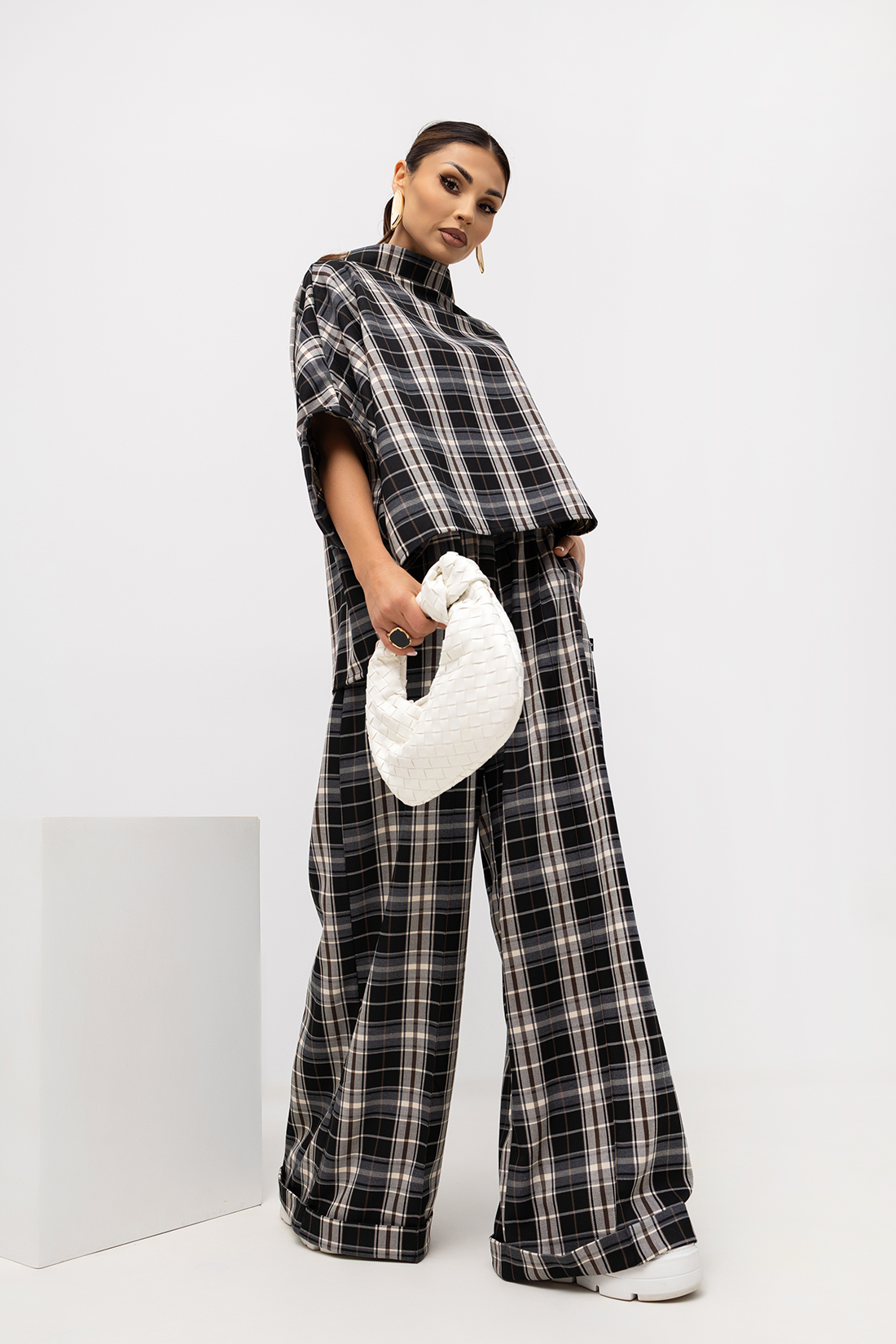 Spodnie Grid Pattern to idealna baza do wielu stylizacji – wygodne, modne i dopracowane w detalach. Doskonały wybór dla kobiet, które chcą wyglądać stylowo bez rezygnowania z komfortu.