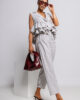 Model wyróżnia się eleganckim, koszulowym kołnierzem oraz subtelnym zapięciem na guziki, co nadaje mu lekko formalnego, ale wciąż bardzo kobiecego wyglądu. Bezrękawnikowy fason sprawia, że bluzka jest doskonałym wyborem na cieplejsze dni, zapewniając komfort i swobodę ruchów.