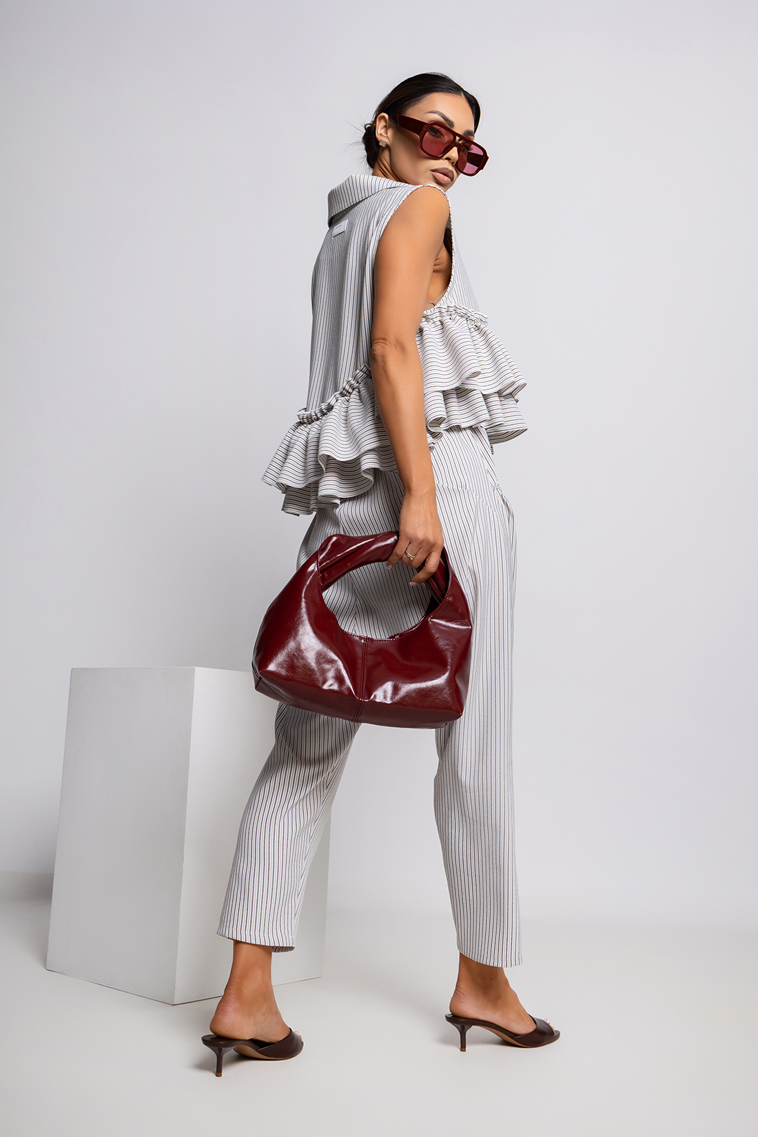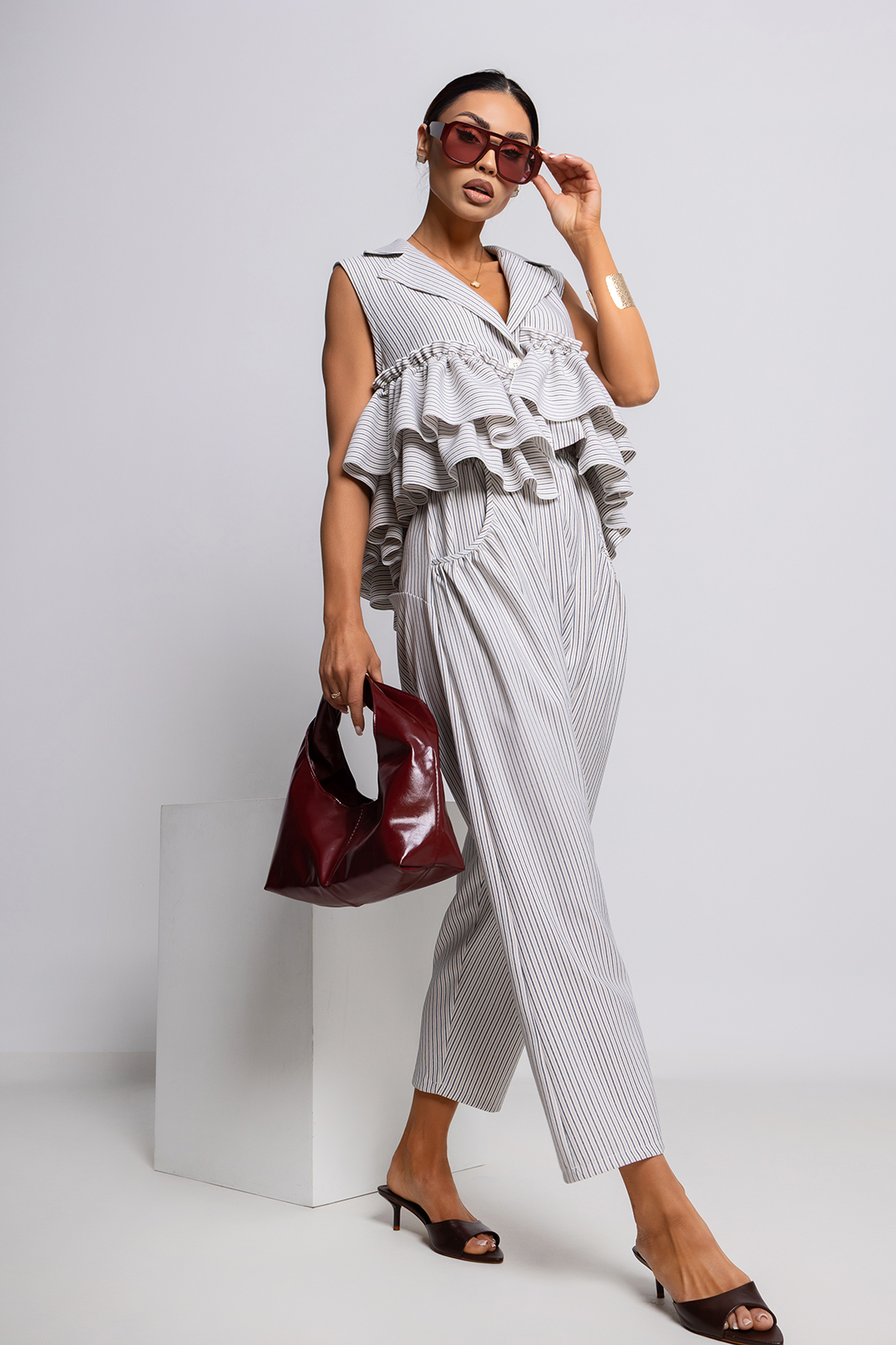 Ta wyjątkowa bluzka to idealne połączenie nowoczesnej formy z romantycznymi detalami, które przyciągają wzrok i nadają stylizacji niepowtarzalnego charakteru.